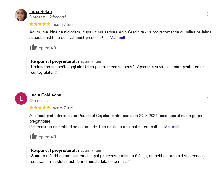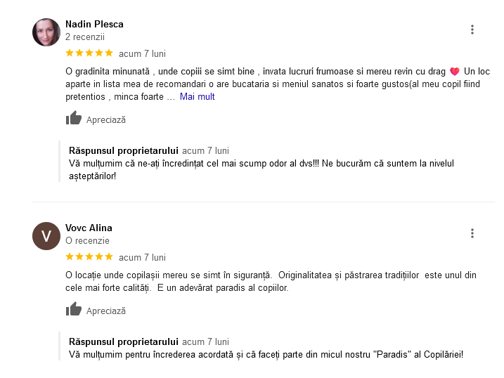 Evoluţia de an cu an şi mulţumirile părinţilor ne motivează să fim şi mai buni pentru a oferi siguranță și confort fiecărui preșcolar!